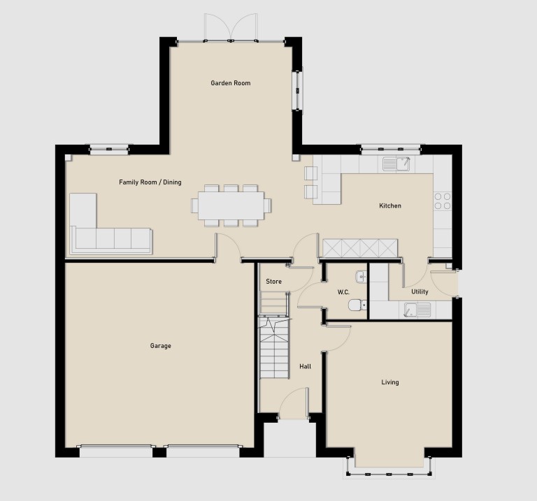 When you enter the heart of the home, the boundaries between living and entertaining blur effortlessly. The open-plan layout seamlessly integrates the kitchen, garden room, and dining area, fostering a sense of togetherness and family living – this space is a serene retreat connecting you with the beauty of the outdoors. In The Langley, there is also a separate but equally spacious living room where you can unwind and make your own relaxation haven. The ground floor is also complete with a practical utility and W.C. room.